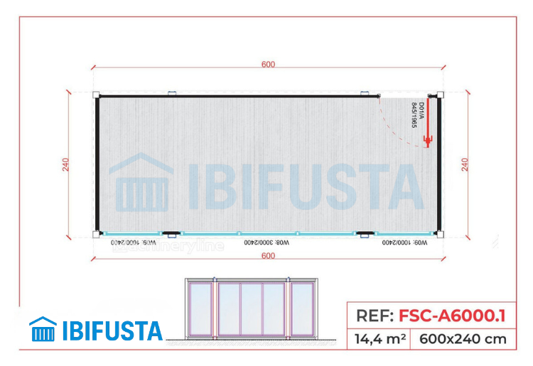 La Caseta Vitrina FSC-A6000.1 es un módulo prefabricado acristalado de 14,4 m² (6,00 × 2,40 m), diseñado para ofrecer amplitud, luminosidad y confort en entornos de trabajo o eventos. Su estructura metálica galvanizada y sus grandes ventanales de doble acristalamiento la convierten en una solución moderna y funcional para vestuarios, oficinas temporales o puntos de atención.